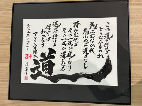 例えば、企業理念の額装作品、開店祝いや新築祝いなどの贈り物、ご自身のお部屋や職場に飾るインテリア額装作品などにご依頼いただいております。
